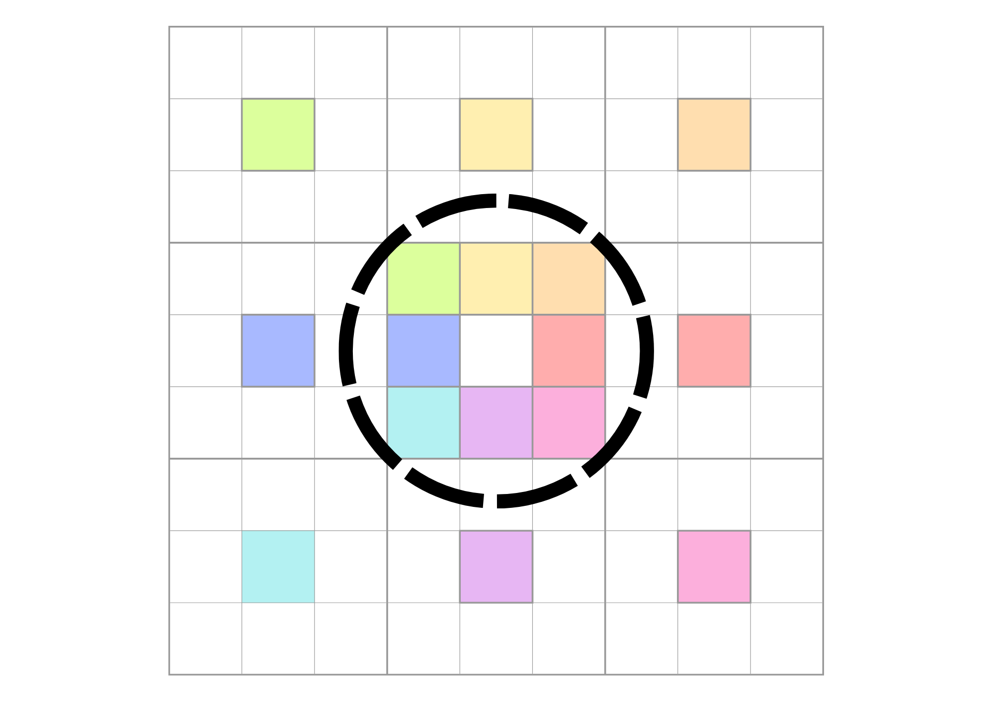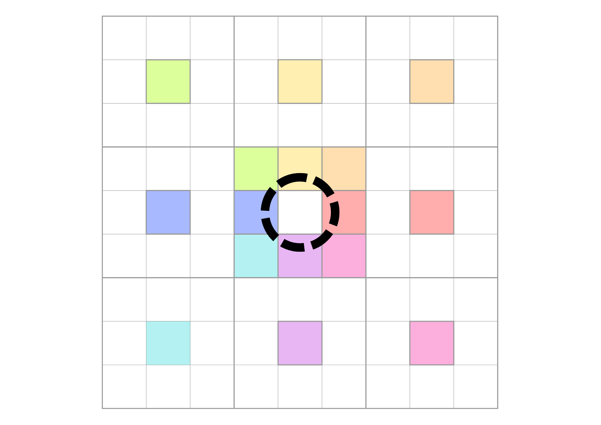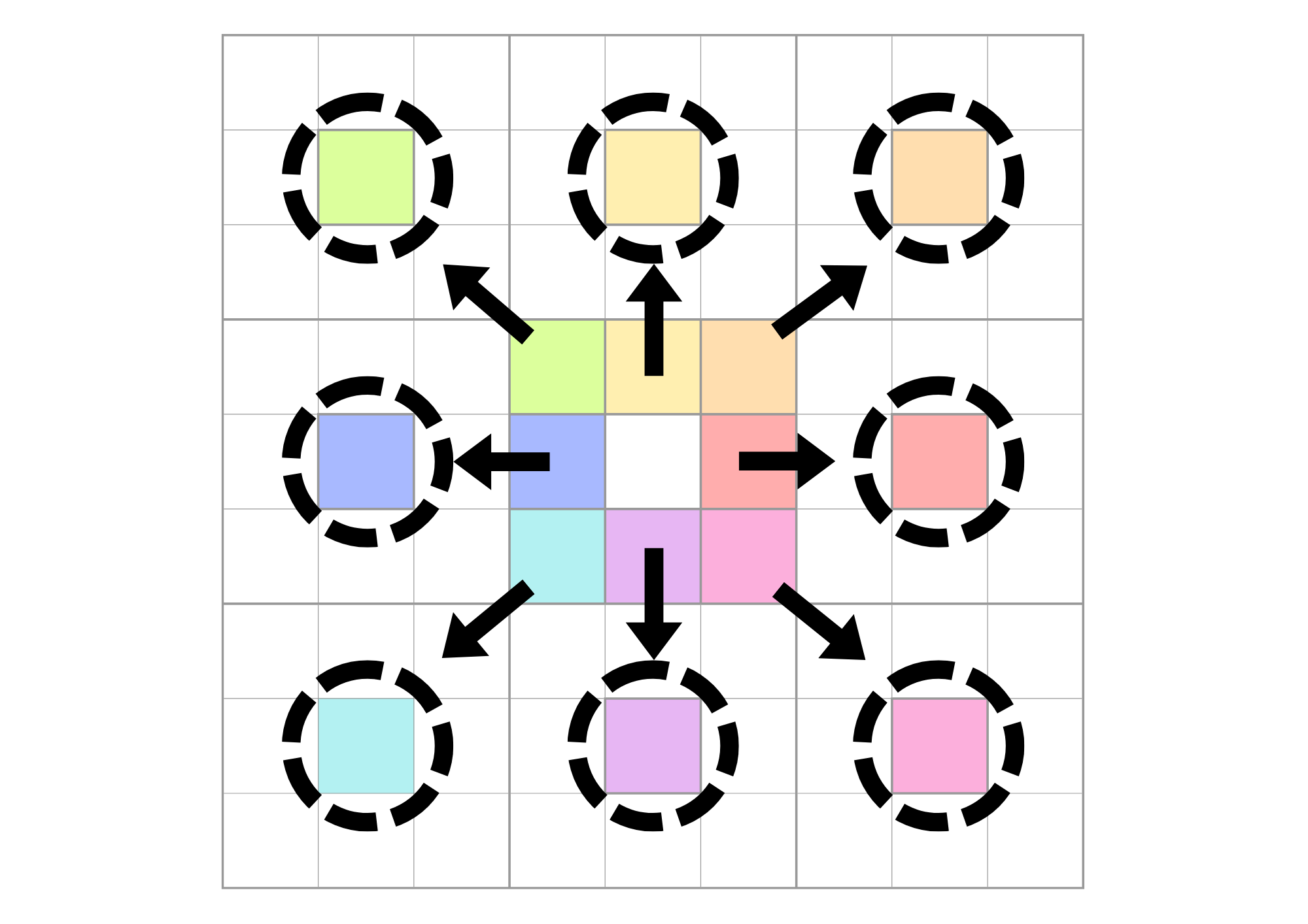 1) 8つのカテゴリをさらに外側の3×3のブロックの中心に転記します。